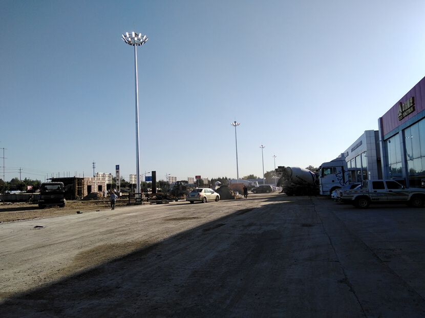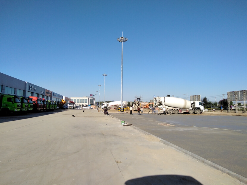 北京重卡4S店停車場照明工程,本次廣場場區(qū)共安裝15套12米中桿燈和6套20米高桿燈
