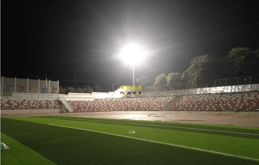 陜西西安翻譯學(xué)院綜合體育場高桿燈工程,操場四角各安裝一套18米升降高桿燈,每套燈配置12盞300W大功率LED(飛利浦芯片,明緯電源),夜間體育場整體平均亮度為26-35Lux,夜晚如白晝,調(diào)試效果深受校方認(rèn)可。