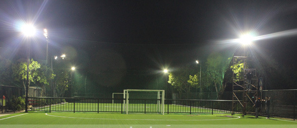 足球場高桿燈屬于高桿燈的一種,它與常規高桿燈的主要區別在于整體高度和照射視角上。球場高桿燈的高度通常在30米以上,照射角度通常低于180°。